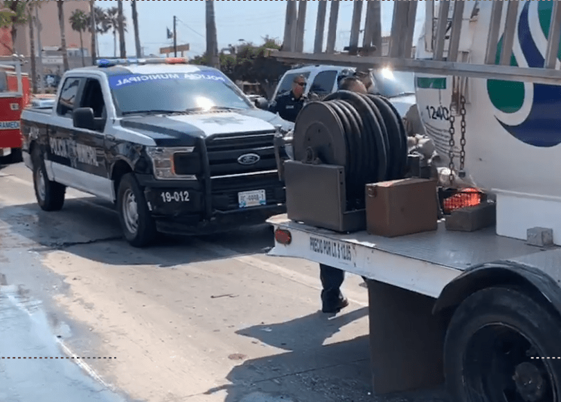 En esta ocasión, fue en la zona centro de Rosarito donde un Pipero de Baja Gas despues de cargar un tanque estacionario, dejo la válvula abierta y desconecto la manguera del tanque lo que hizo que escapara el gas por la manguera y estuviera chicoteando.