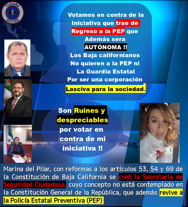 Marina del Pilar, con reformas a los artículos 53, 54 y 69 de la Constitución de Baja California se creó la Secretaría de Seguridad Ciudadana, cuyo concepto no está contemplado en la Constitución General de la República, que además revive a la Policía Estatal Preventiva (PEP) creada en el gobierno panista de Eugenio Elorduy Walter.
