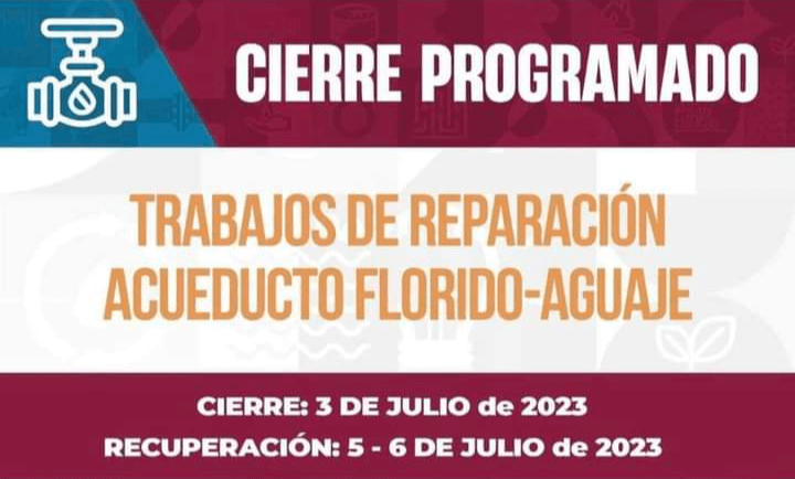 Programado para 632 colonias de Tijuana y Rosarito, a partir de las 0:00 horas, iniciando la recuperación a partir de las 6 de la tarde del día martes y estimando el restablecimiento total del servicio de agua para la mañana del jueves 6 de julio.