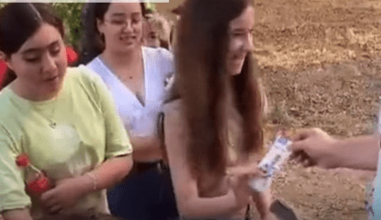 En un ambiente de música, adultos y niños se forman en una fila, mientras «Tony» Flores, como se hace llamar, les muestra una fajo y entrega un billete de $500 pesos a cada niño.