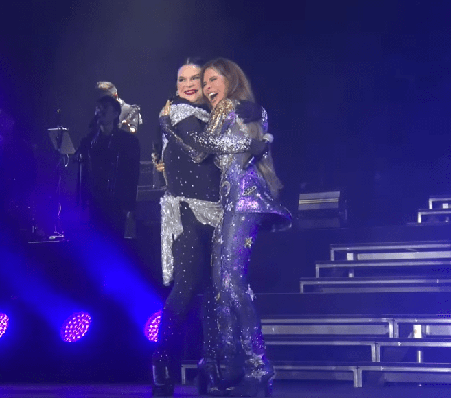 MÉXICO.- Tras ocho años del reencuentro entre Gloria Trevi y María Raquenel Portillo, la promesa de que volverían a coincidir se ha cumplido. Este sábado -28 de febrero-, la cantante recibió a su excompañera arriba del escenario y, al presentarla, además de elogiar su voz prodigiosa, se refirió a ella como su «amiga».