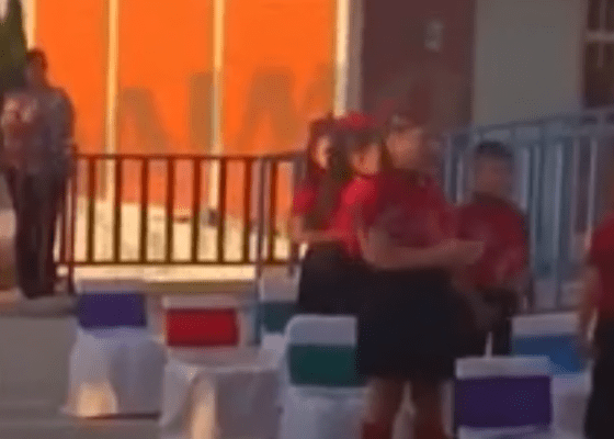 Los niños de una escuela estaban esperando a que sonara la música para comenzar la actuación cuando, de repente, un