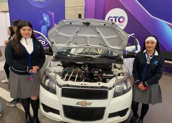 Estudiantes de telebachillerato crean sistema que transforma un auto de combustible a eléctrico. Ellas son las guanajuatenses, Amairani y Andrea,